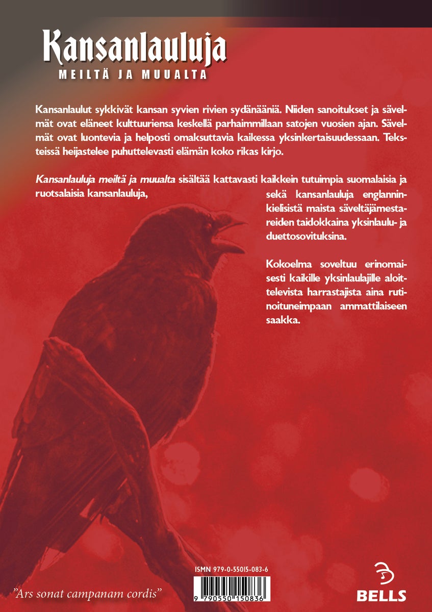Familiar and easy-to-learn melodies provide also a great help for beginning singers. The fine arrangements support the singing voice without losing their personalities and uniqueness. Kansanlauluja meiltä ja muualta is a great collection for any singer and suits well in any situation.