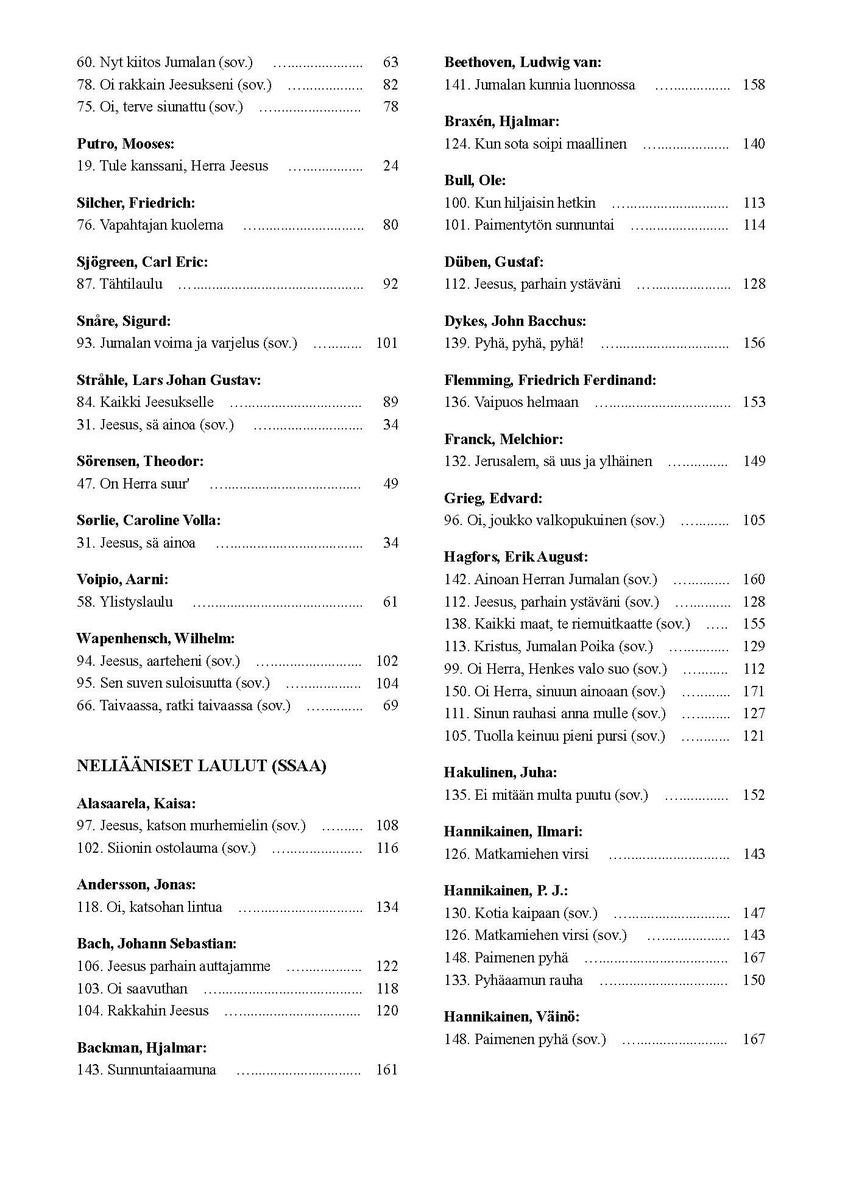 - Trad. (arr. Kaisa Alasaarela): Voisinpa Jeesuksestani